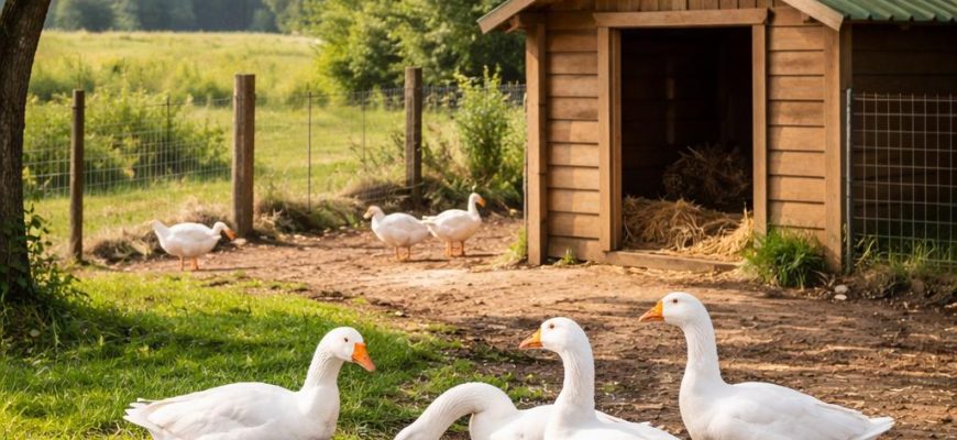 При содержании гусей на приусадебном участке основной практический вопрос — как организовать для них место проживания так, чтобы птица нормально росла
