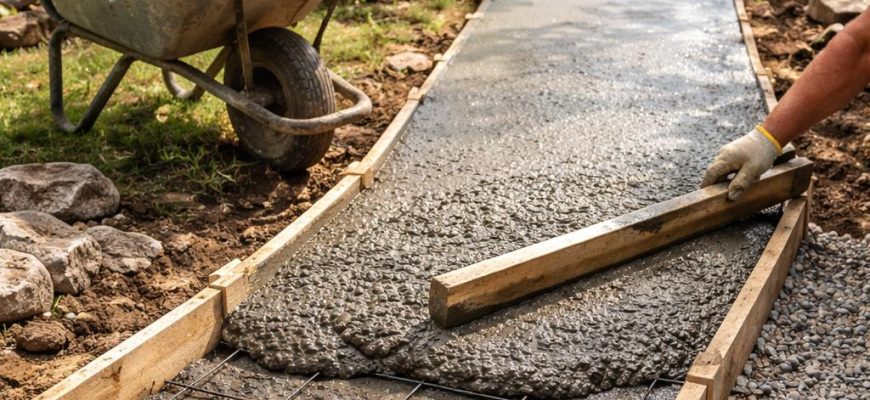 Вопрос обустройства садовых и дачных дорожек всегда актуален, особенно если требуется выбрать долговечный и эстетичный материал. Бетон — это одно из самых
