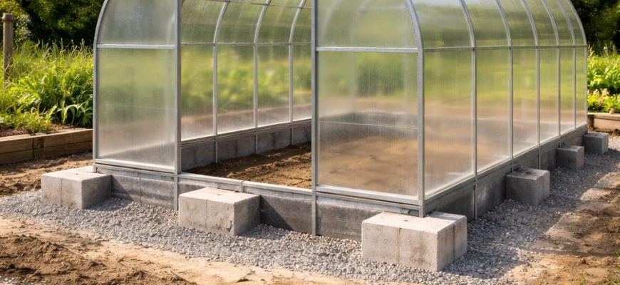 Теплица — лёгкое, но протяжённое сооружение, чувствительное к перекосам основания и сезонным подвижкам грунта. От типа фундамента здесь зависит