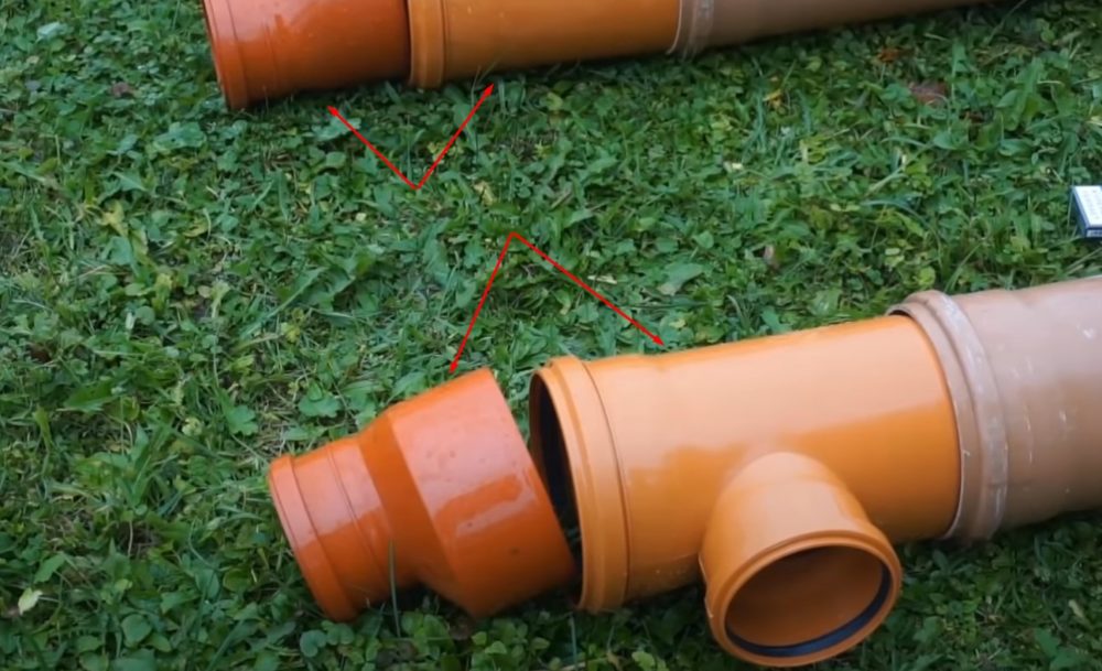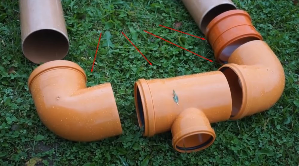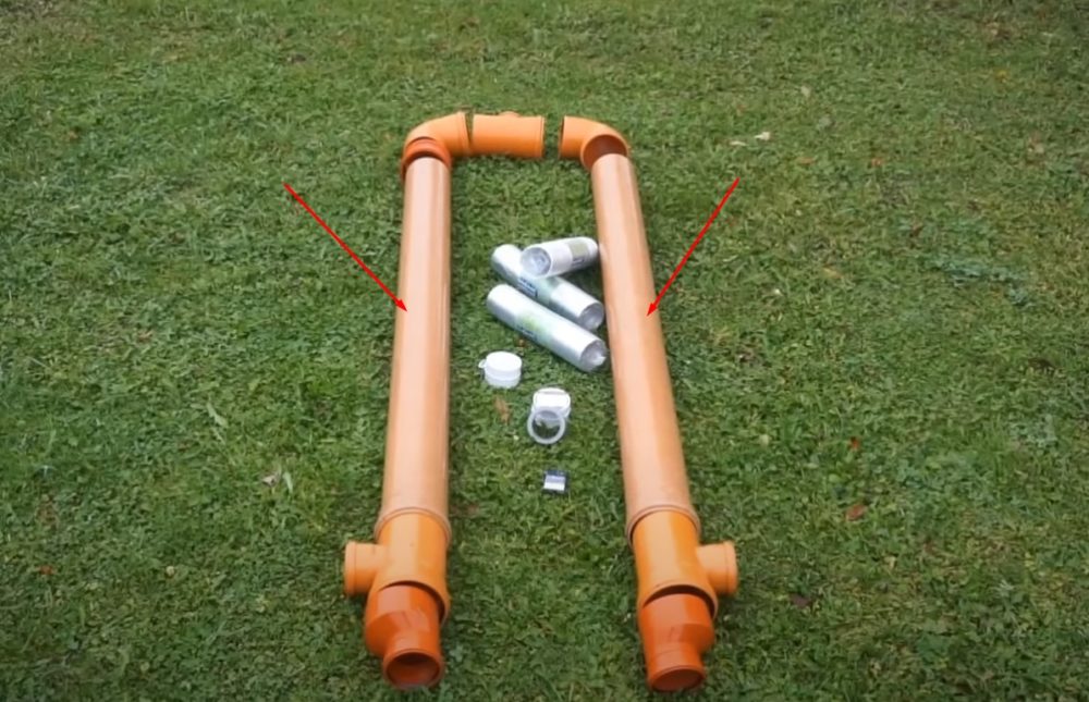 - Свободные концы гофр, выходящие из второй ПВХ трубы и закольцовочного узла, соедините между собой переходником. Приступайте к сборке кожуха. ПВХ трубы соедините с коленами закольцовочного узла.