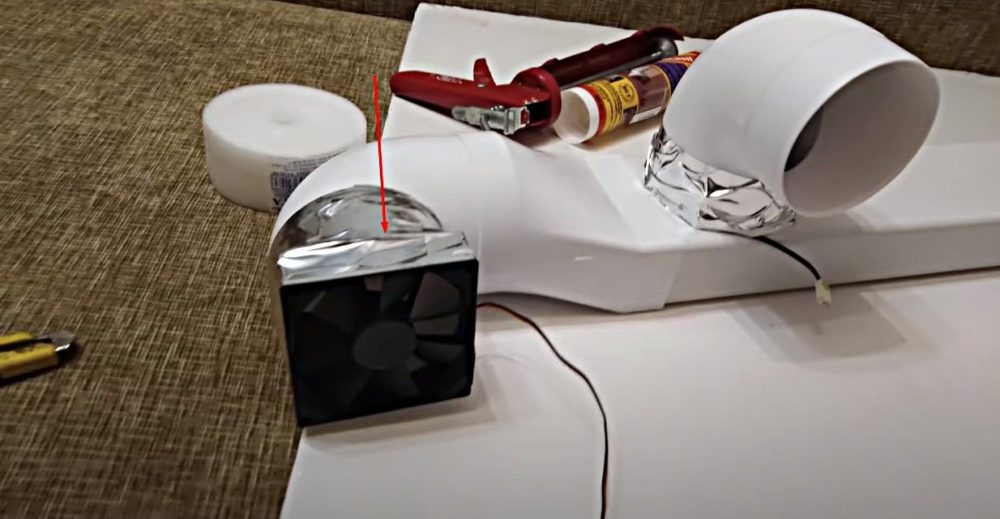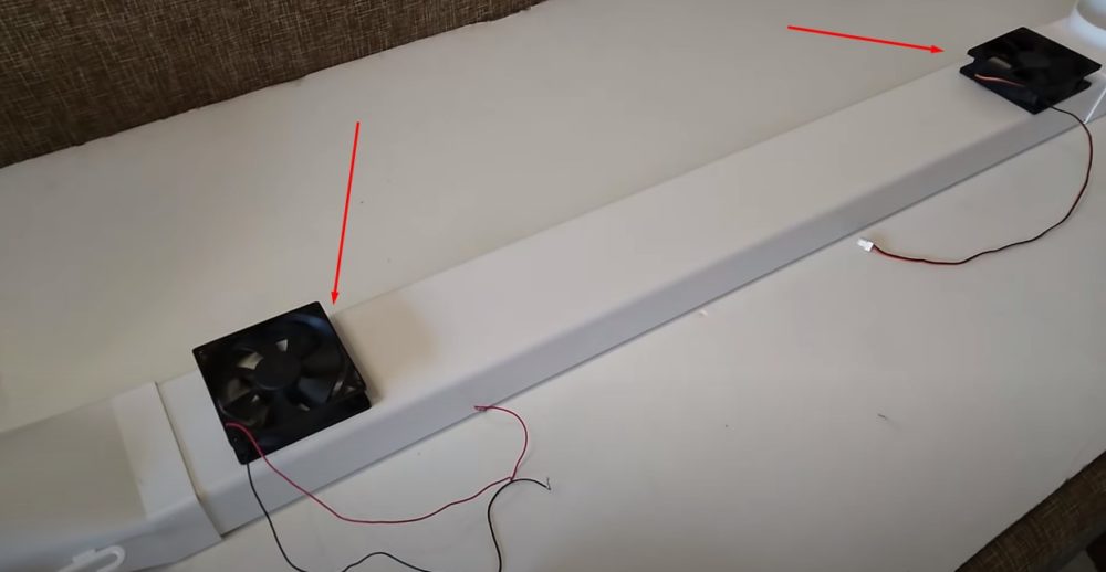 Вентиляторами послужат компьютерные кулеры, запитанные от переносного блока питания. Производительности собранной своими руками установки хватит на комнату площадью 12 м2.