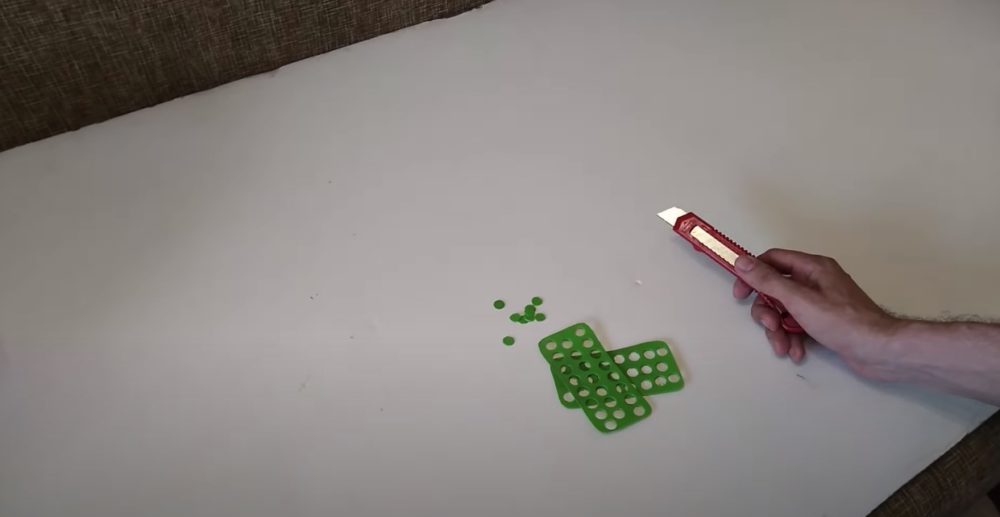 - Для сборки радиатора на торцы прямоугольного короба из пластика вырежьте 2 заглушки. Разметьте с равномерным отступом рядами 25 отверстий под алюминиевые трубки. Сделайте прорези канцелярским ножом.