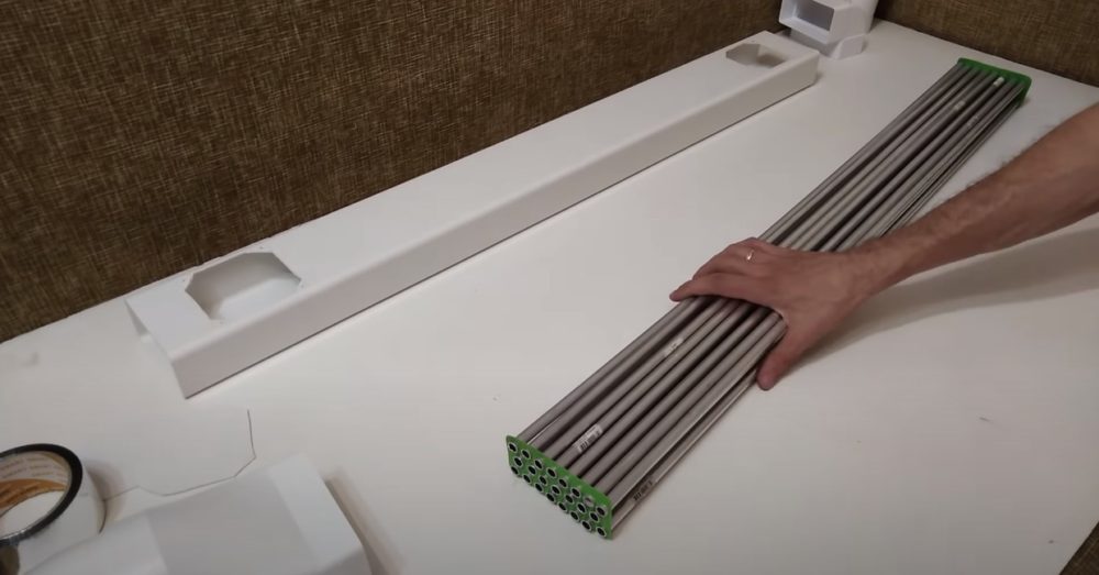 - Из алюминиевых трубок и перфорированных заглушек соберите сердцевину радиатора. Каждый элемент вставьте в соосные отверстия, чтобы получился трубчатый блок.