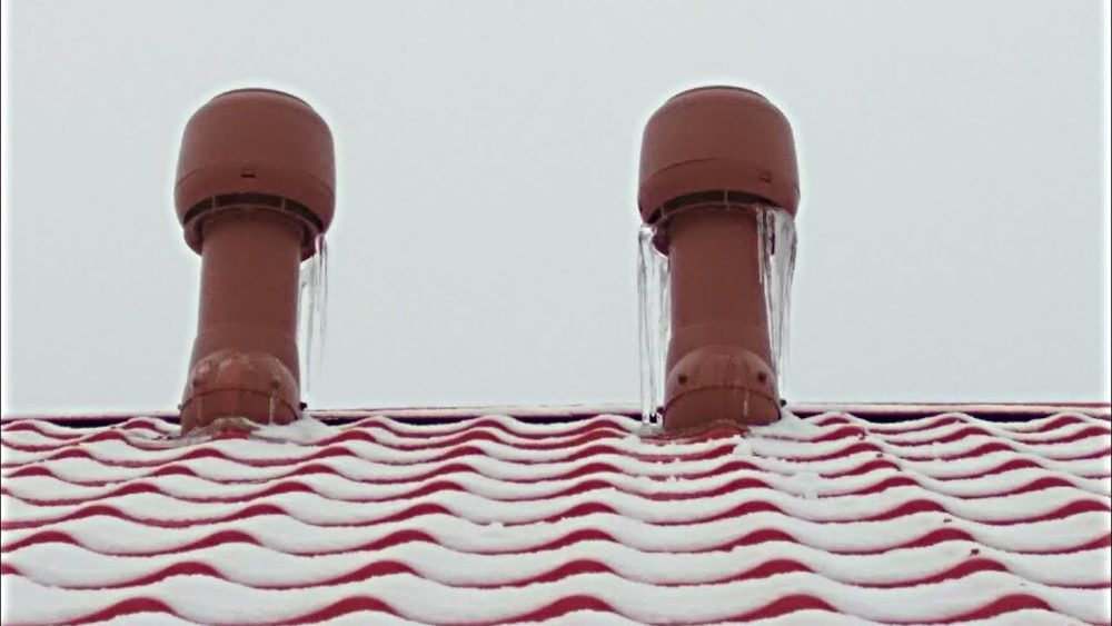 Аналогичная ситуация происходит с выходом неутепленной вытяжки на крыше. Труба с оголовком зимой обрастает наростами льда. Кроме стояка воздуховода, наледь способна разрушить участок кровельного покрытия.